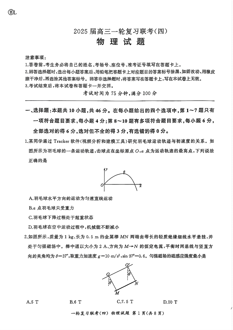 百师联盟2025届高三一轮复习联考(四)物理.pdf