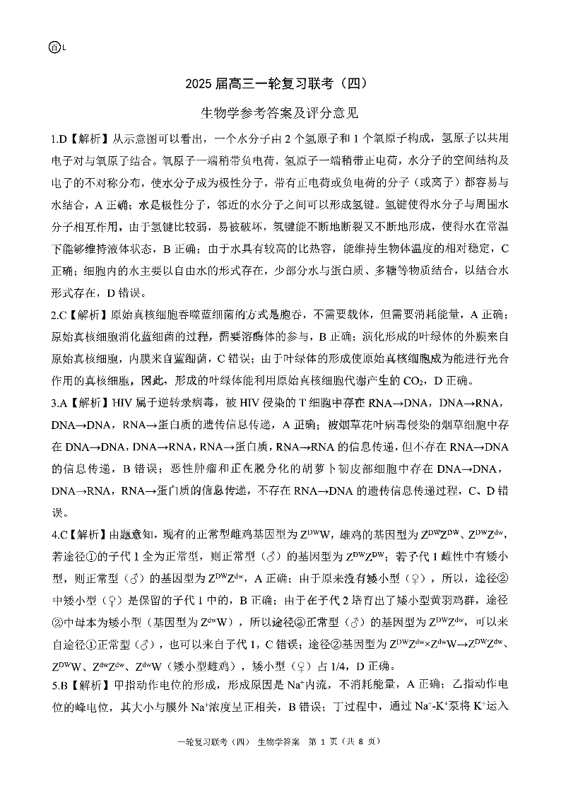 百师联盟2025届高三一轮复习联考(四)生物答案.pdf