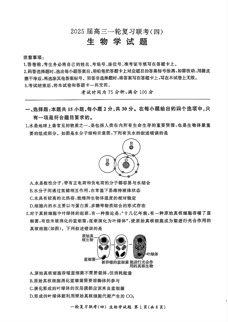 百师联盟2025届高三一轮复习联考(四)生物.pdf