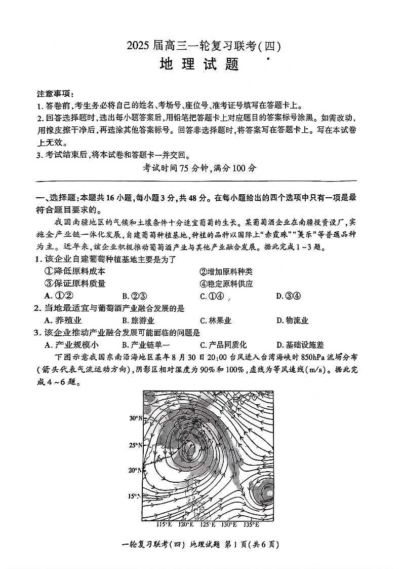 百师联盟2025届高三一轮复习联考(四)地理.pdf