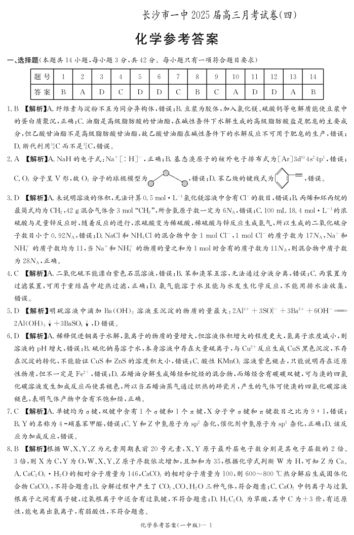 湖南省长沙市第一中学2025届高三上学期月考试卷(四)化学答案.pdf