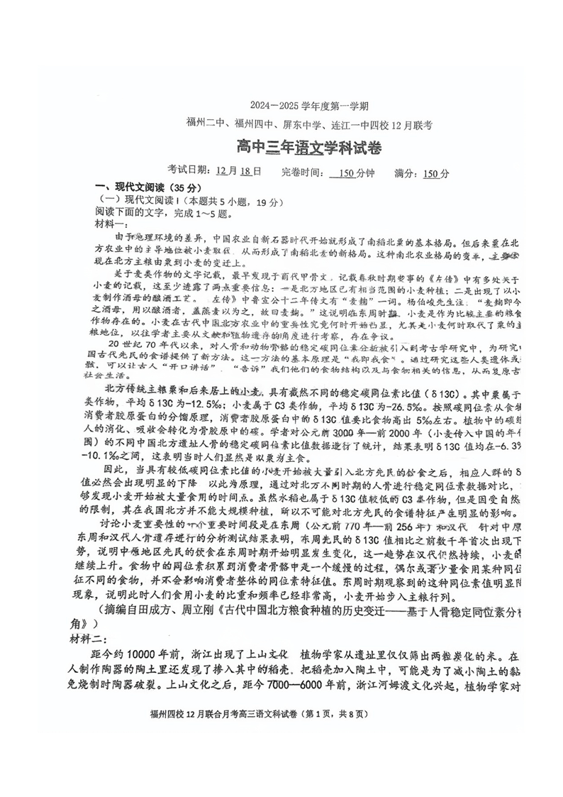 福建省福州二中、福州四中、屏东中学、连江一中四校2025届高三12月联考 语文.pdf
