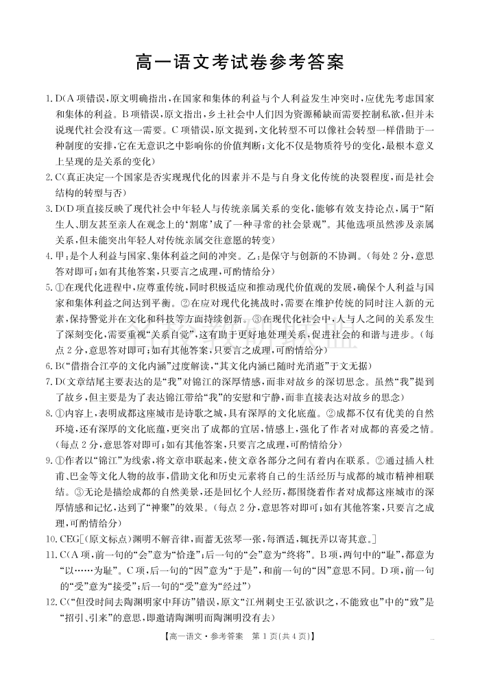 云南省昆明市五华区2024-2025学年高一上学期12月月考 语文答案.pdf