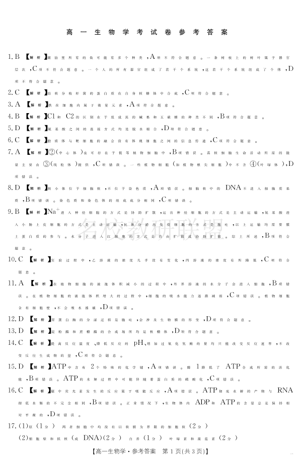 云南省昆明市五华区2024-2025学年高一上学期12月月考 生物答案.pdf