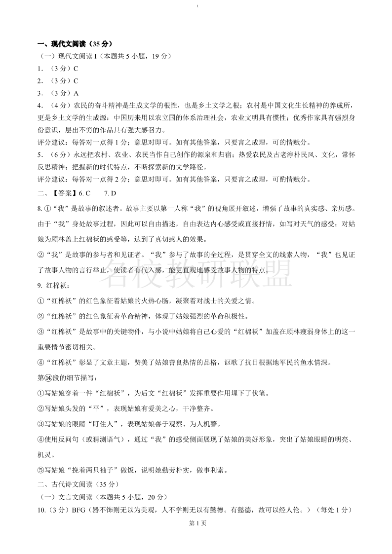 江苏省扬州市八校2024-2025学年高一上学期12月学情检测 语文答案.pdf