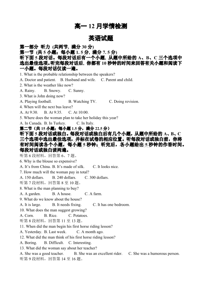 江苏省扬州市八校2024-2025学年高一上学期12月学情检测 英语.pdf