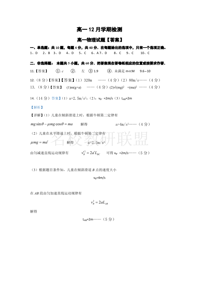 江苏省扬州市八校2024-2025学年高一上学期12月学情检测 物理答案.pdf