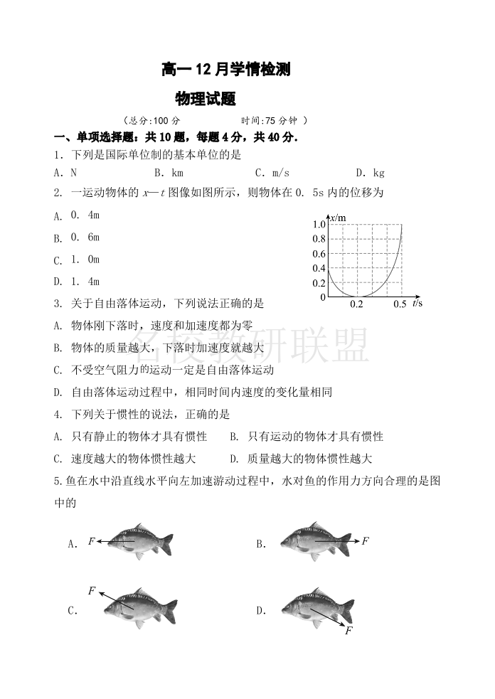 江苏省扬州市八校2024-2025学年高一上学期12月学情检测 物理.pdf