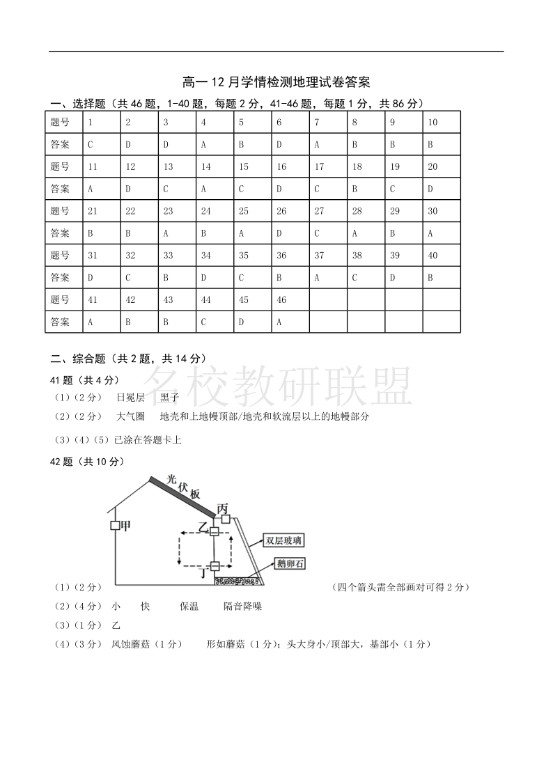 江苏省扬州市八校2024-2025学年高一上学期12月学情检测 地理答案.pdf