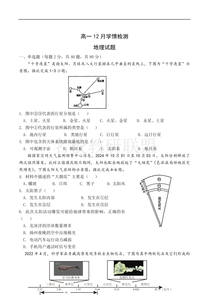 江苏省扬州市八校2024-2025学年高一上学期12月学情检测 地理.pdf