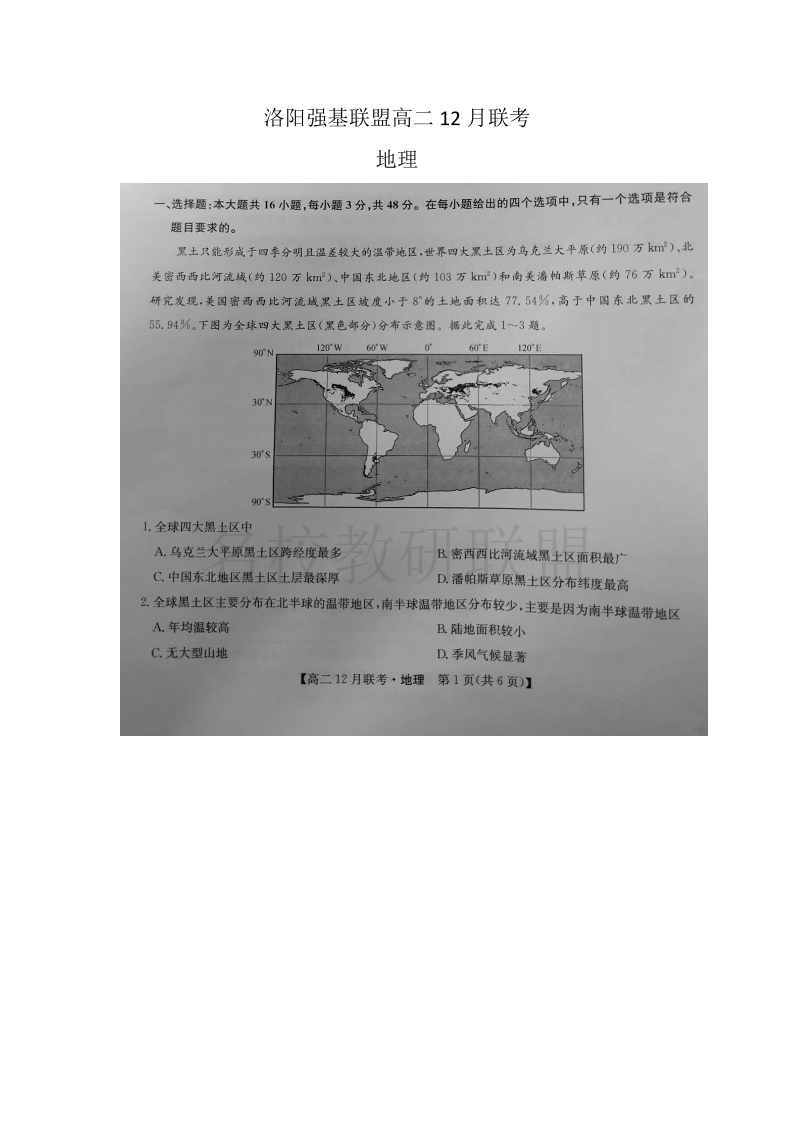 河南省洛阳市强基联盟2024-2025学年高二上学期12月月考 地理.pdf