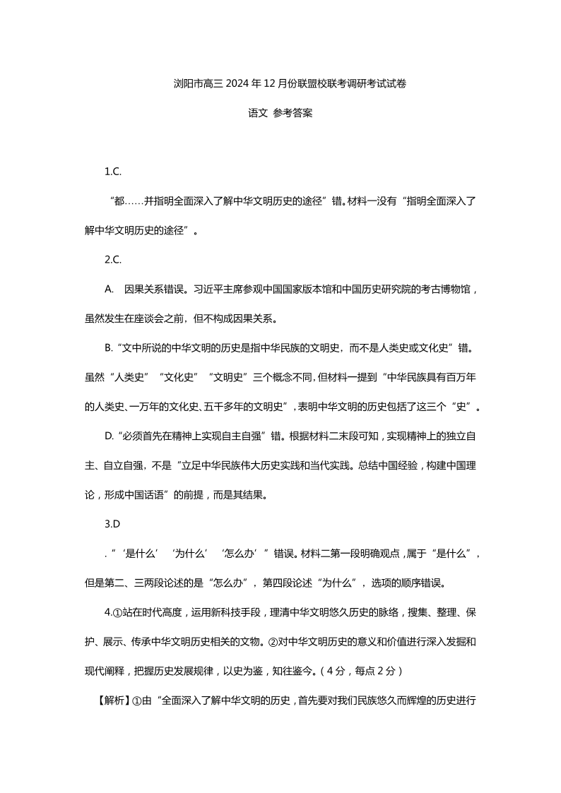 湖南省浏阳市联盟校2025届高三上学期12月联考 语文答案.pdf