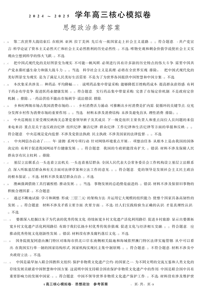 湖北省黄梅县育才高级中学2025届高三核心模拟预测 政治答案.pdf
