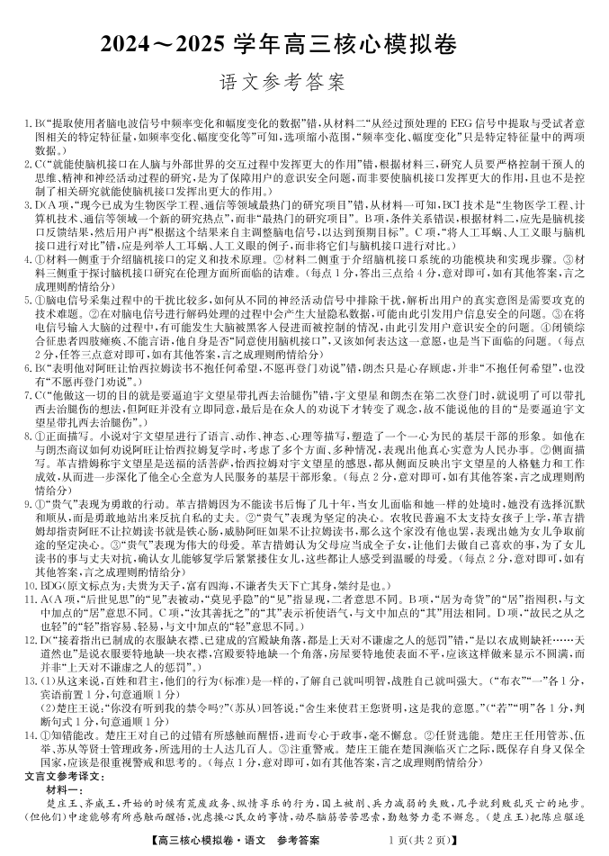 湖北省黄梅县育才高级中学2025届高三核心模拟预测 语文答案.pdf