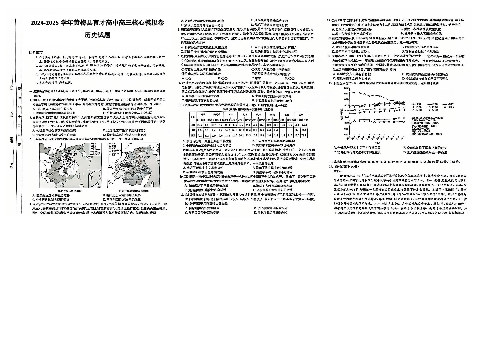 湖北省黄梅县育才高级中学2025届高三核心模拟预测 历史.pdf