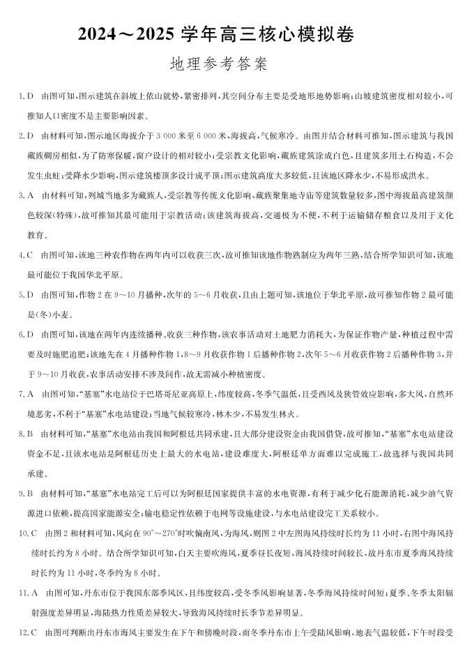 湖北省黄梅县育才高级中学2025届高三核心模拟预测 地理答案.pdf