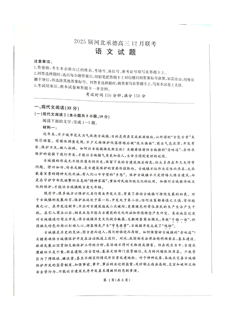 河北省承德市2025届高三12月联考 语文.pdf