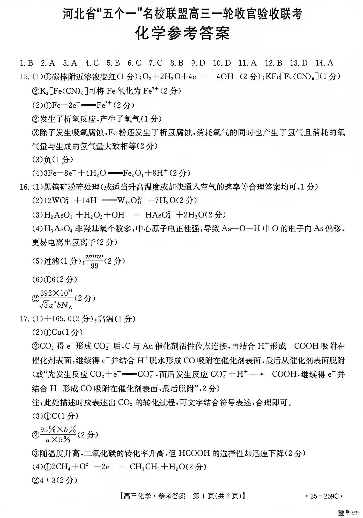 河北省“五个一”名校联盟2024-2025学年高三上学期12月月考 化学答案.pdf