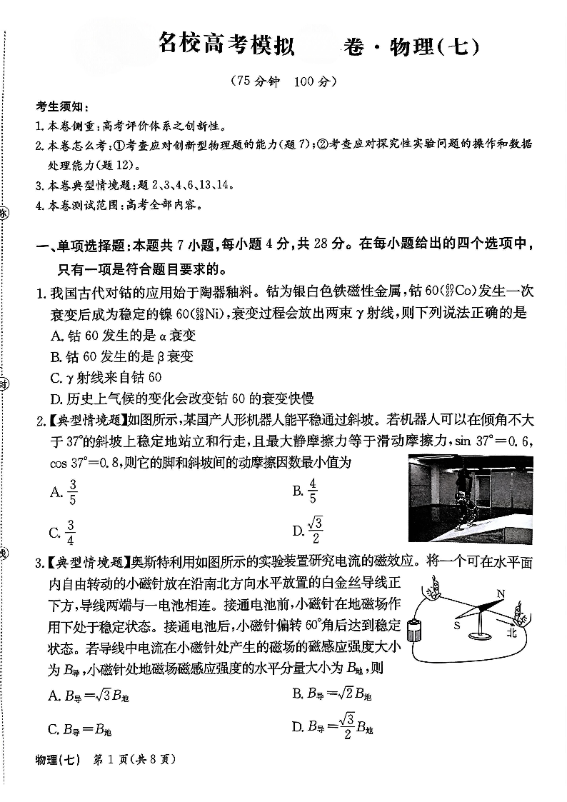 河北省衡水金卷先享题2025届高三一轮复习夯基卷(二)物理.pdf