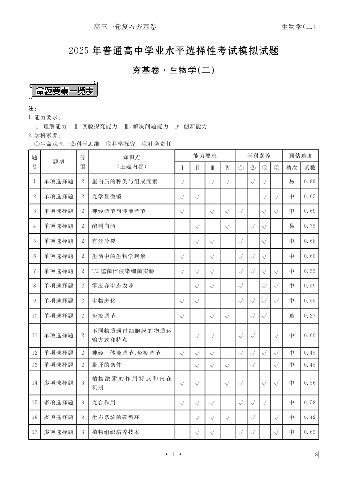 河北省衡水金卷先享题2025届高三一轮复习夯基卷(二)生物答案.pdf