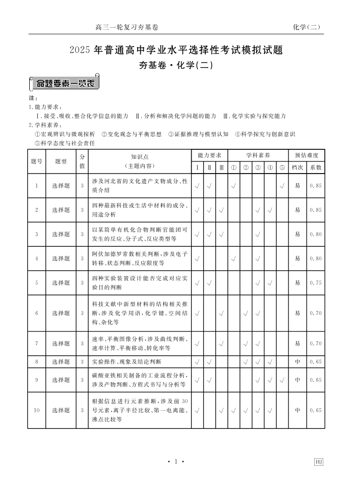 河北省衡水金卷先享题2025届高三一轮复习夯基卷(二)化学答案.pdf