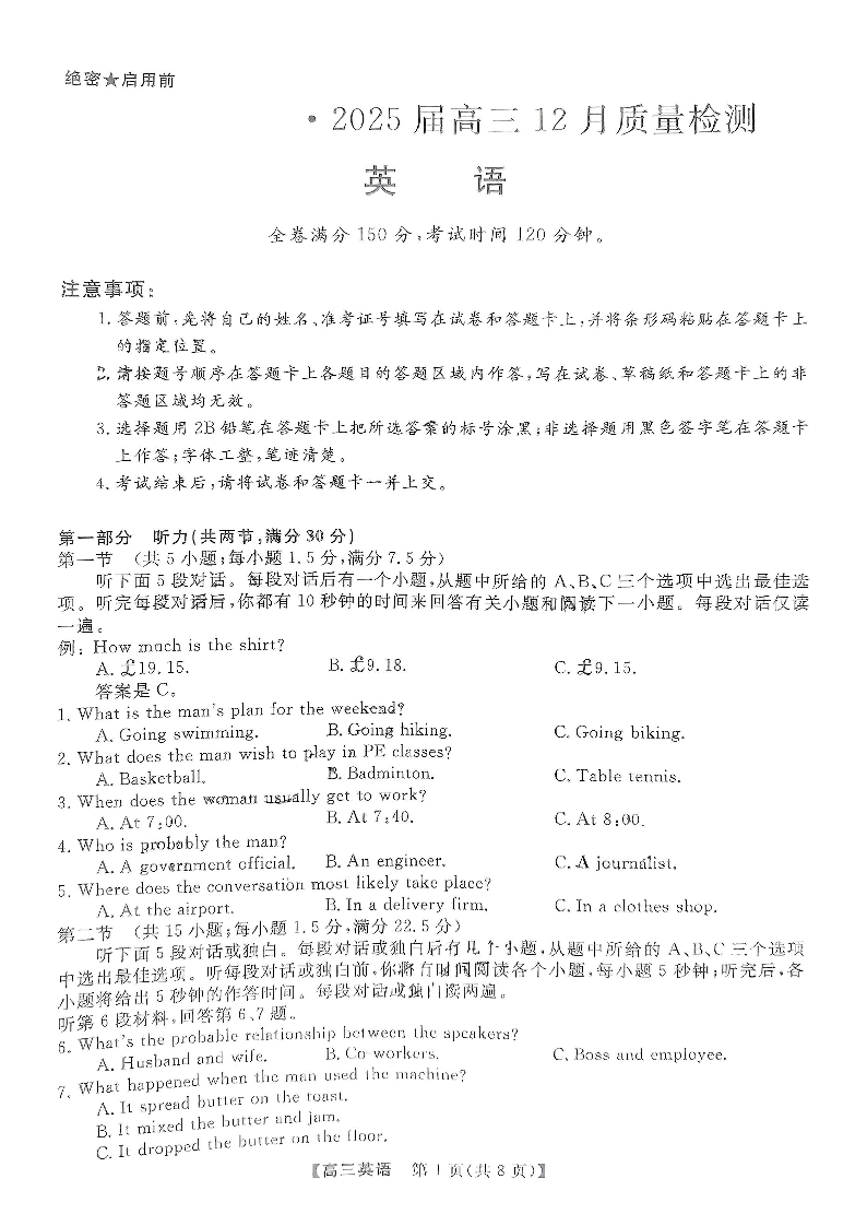 河南省金科新未来2025届高三12月质量检测 英语.pdf