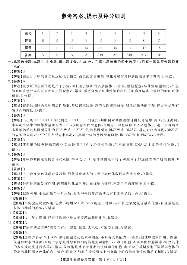 河南省金科新未来2025届高三12月质量检测 生物答案.pdf