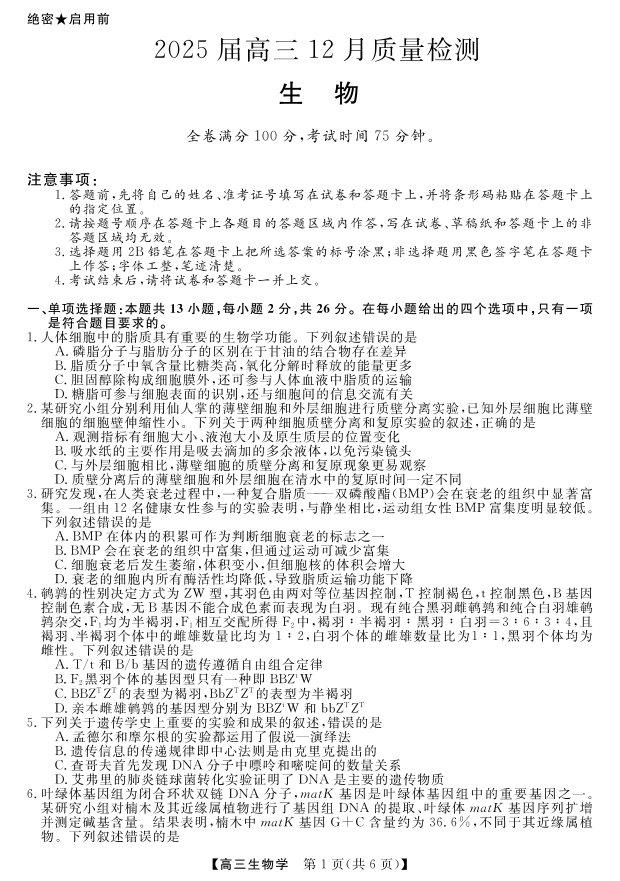 河南省金科新未来2025届高三12月质量检测 生物.pdf