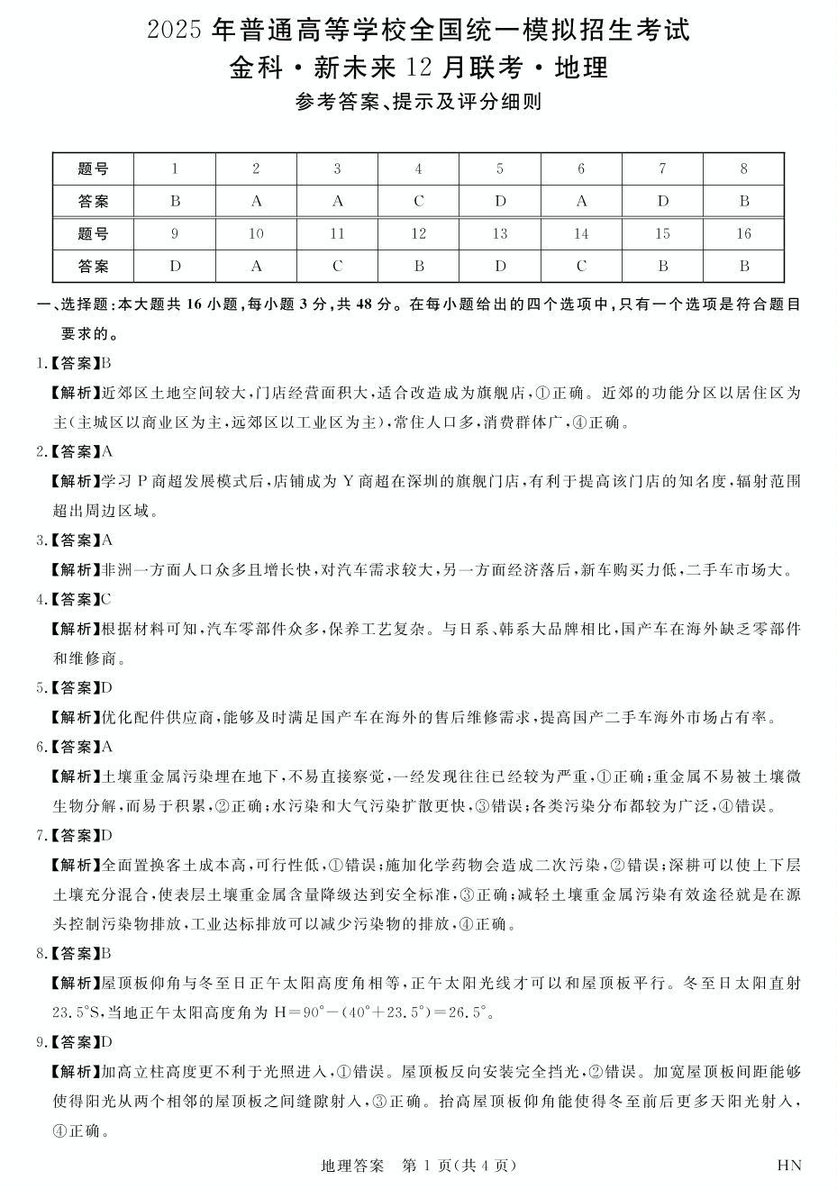 河南省金科新未来2025届高三12月质量检测 地理答案.pdf