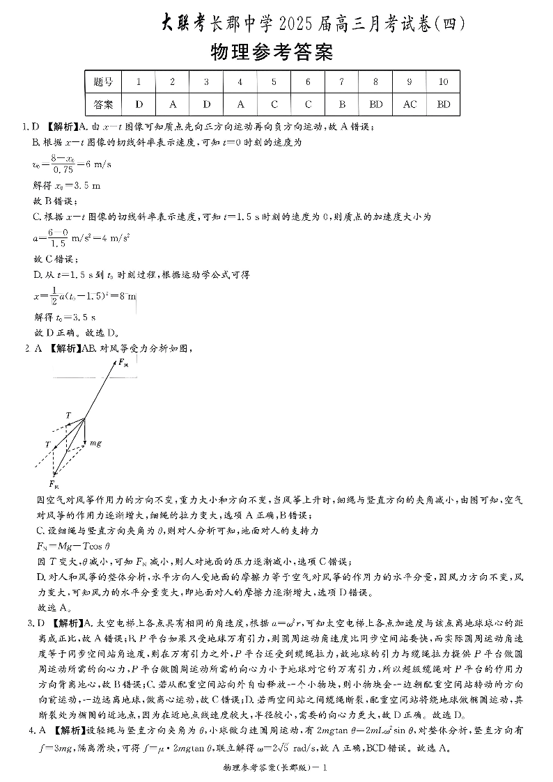 湖南省长沙市长郡中学2025届高三上学期月考(四)物理答案.pdf