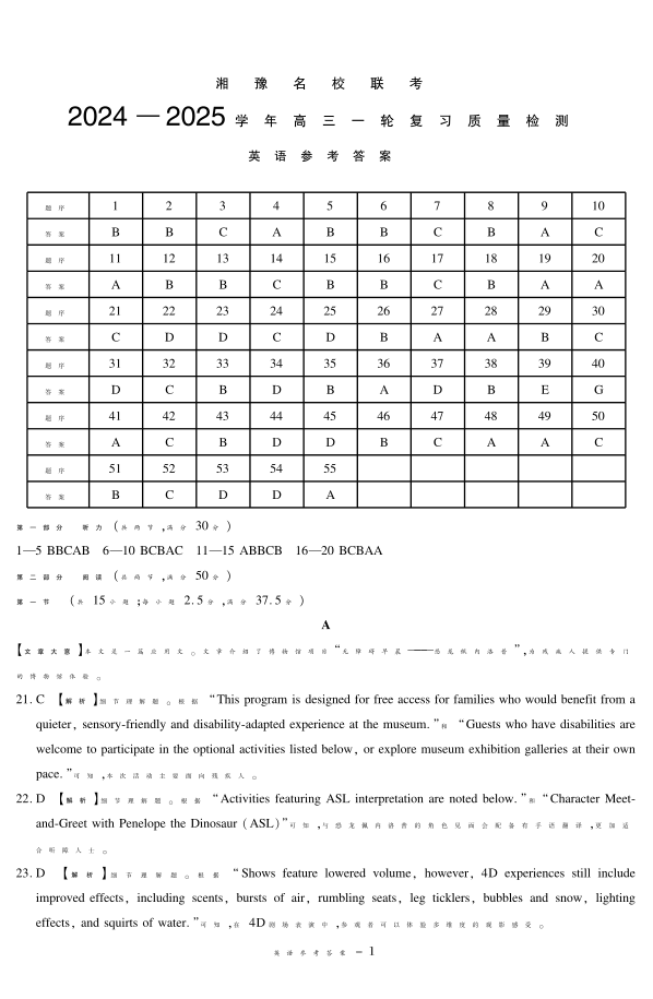 湘豫名校联考2024-2025学年高三上学期12月一轮复习质量检测 英语参考答案.pdf