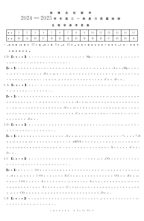湘豫名校联考2024-2025学年高三上学期12月一轮复习质量检测 生物参考答案.pdf
