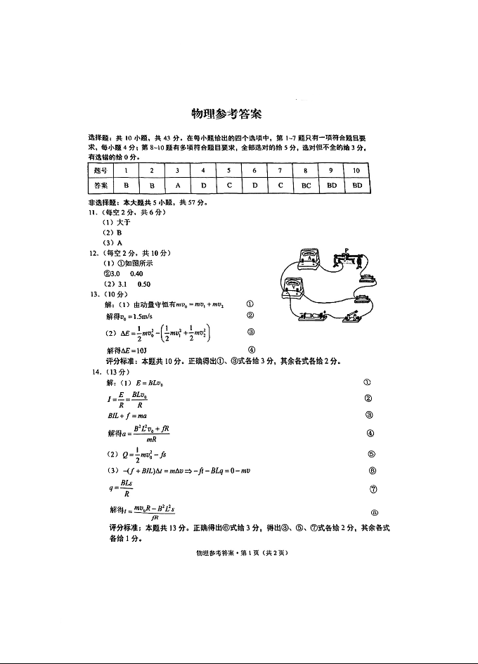 重庆市第一中学校2025届高三上学期12月月考 物理答案.docx