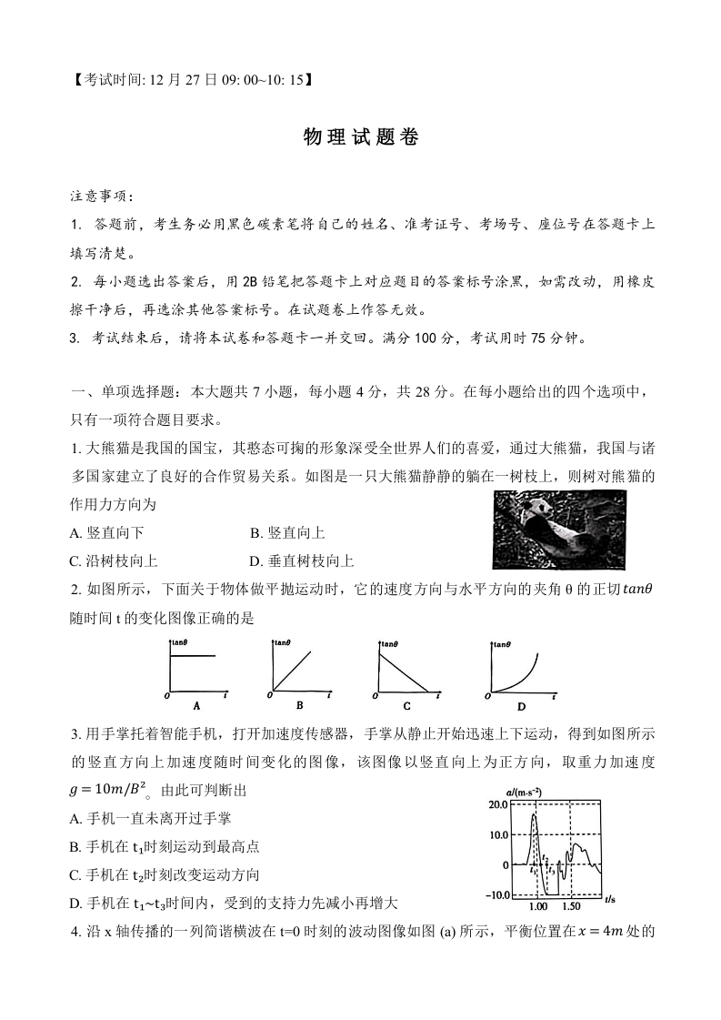 重庆市第一中学校2025届高三上学期12月月考 物理.docx