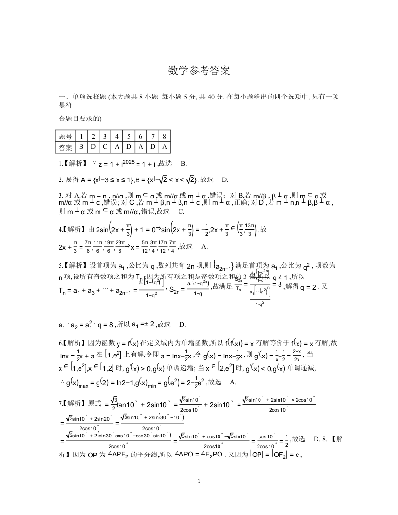 重庆市第一中学校2025届高三上学期12月月考 数学答案.docx