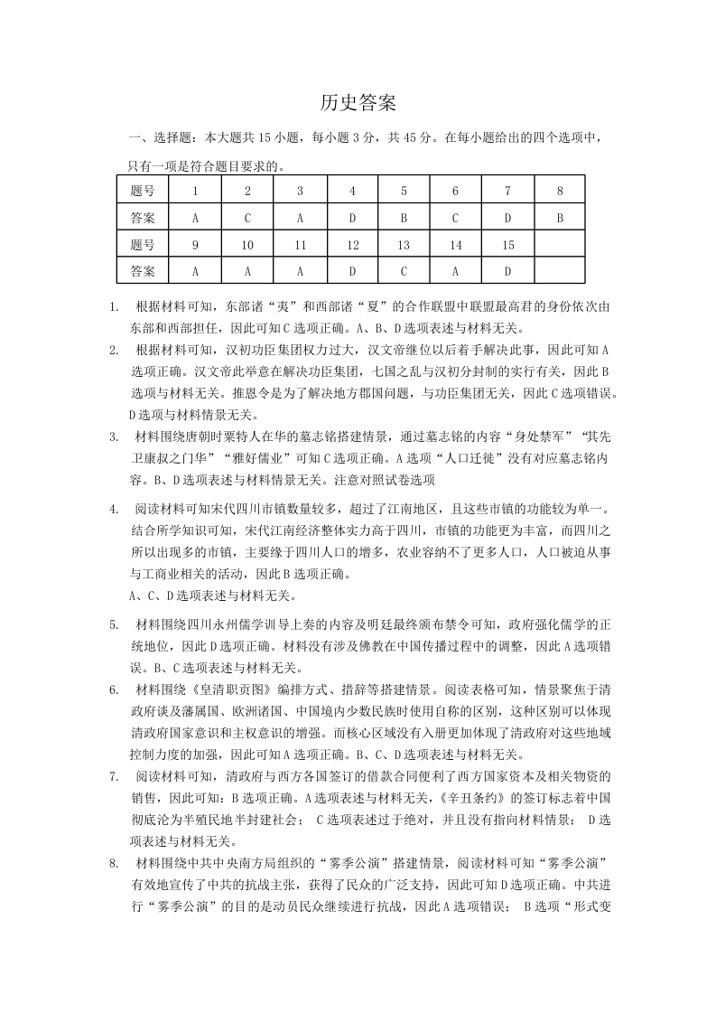 重庆市第一中学校2025届高三上学期12月月考 历史答案.docx
