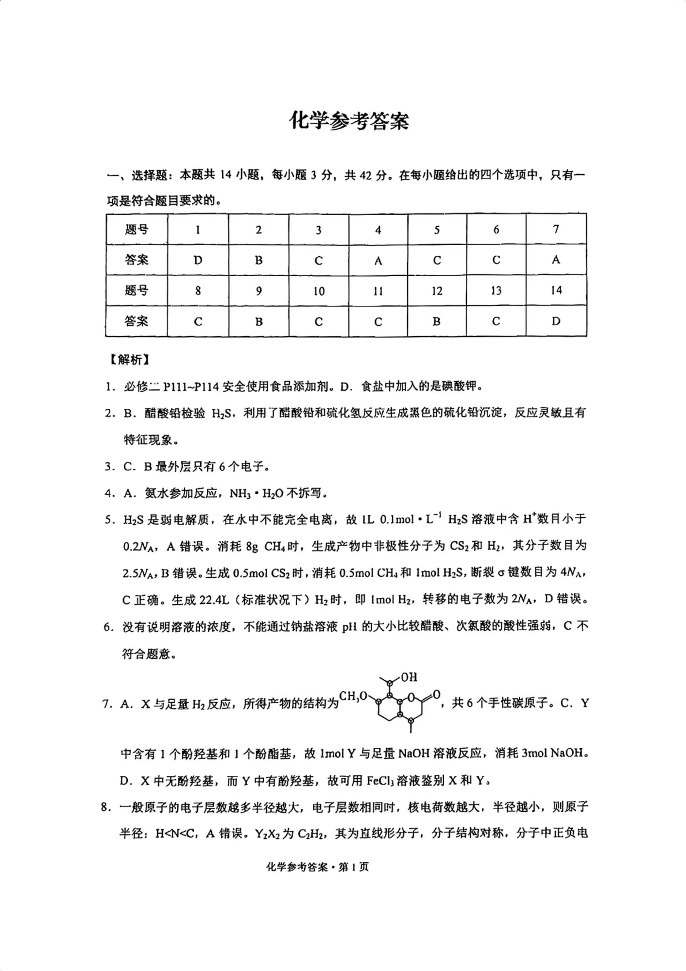 重庆市第一中学校2025届高三上学期12月月考 化学答案.pdf