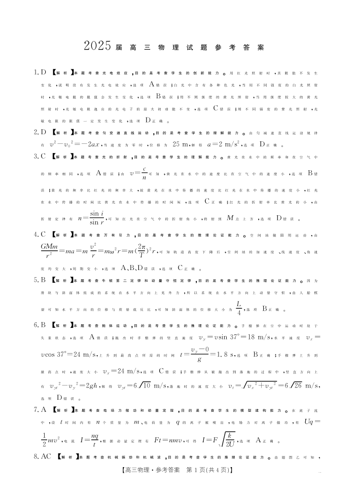 四川省2025届高三上学期12月联考 物理答案.pdf