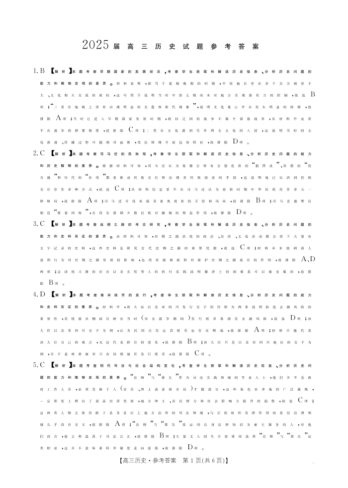 四川省2025届高三上学期12月联考 历史答案.pdf