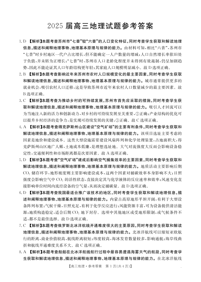 四川省2025届高三上学期12月联考 地理答案.pdf