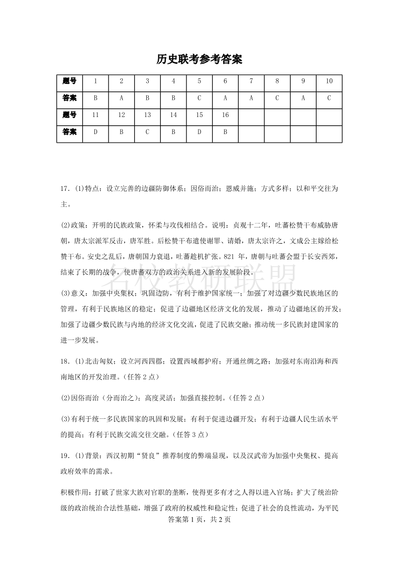 江苏省名校协作体2024-2025学年高一上学期12月联考 历史答案.pdf