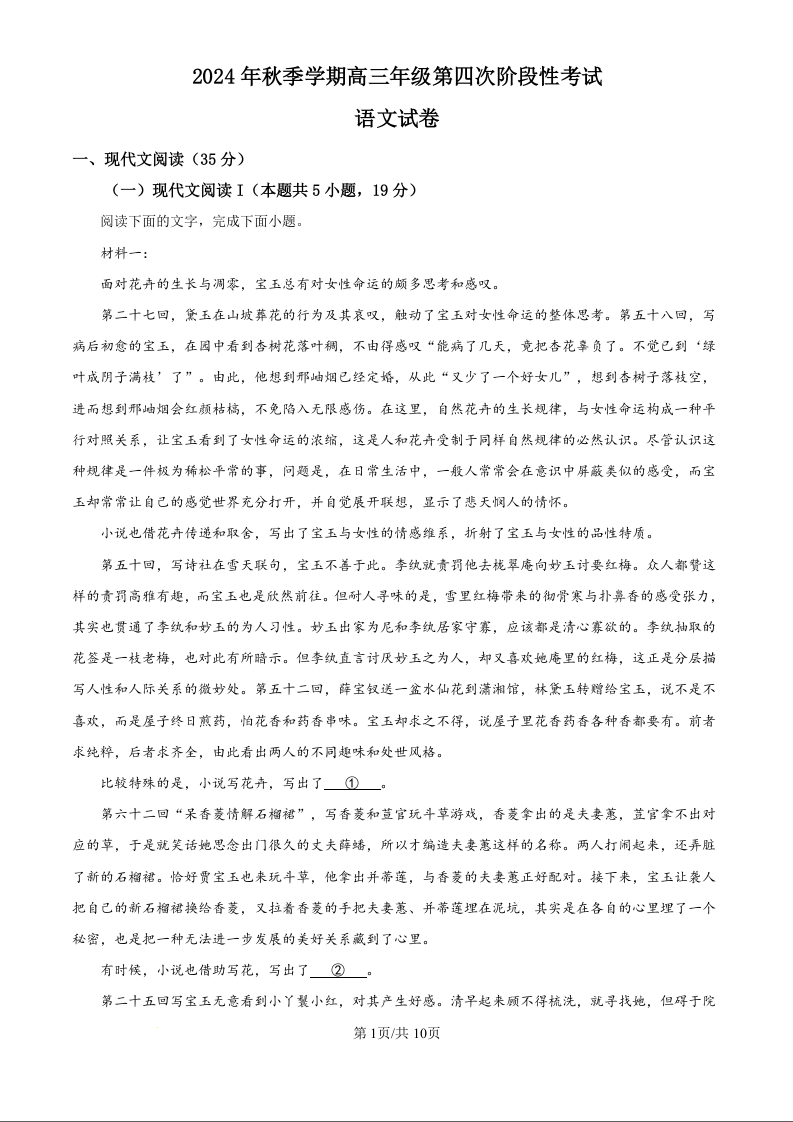 甘肃省平凉一中2024年秋学期高三年级第四次阶段性考试 语文.docx