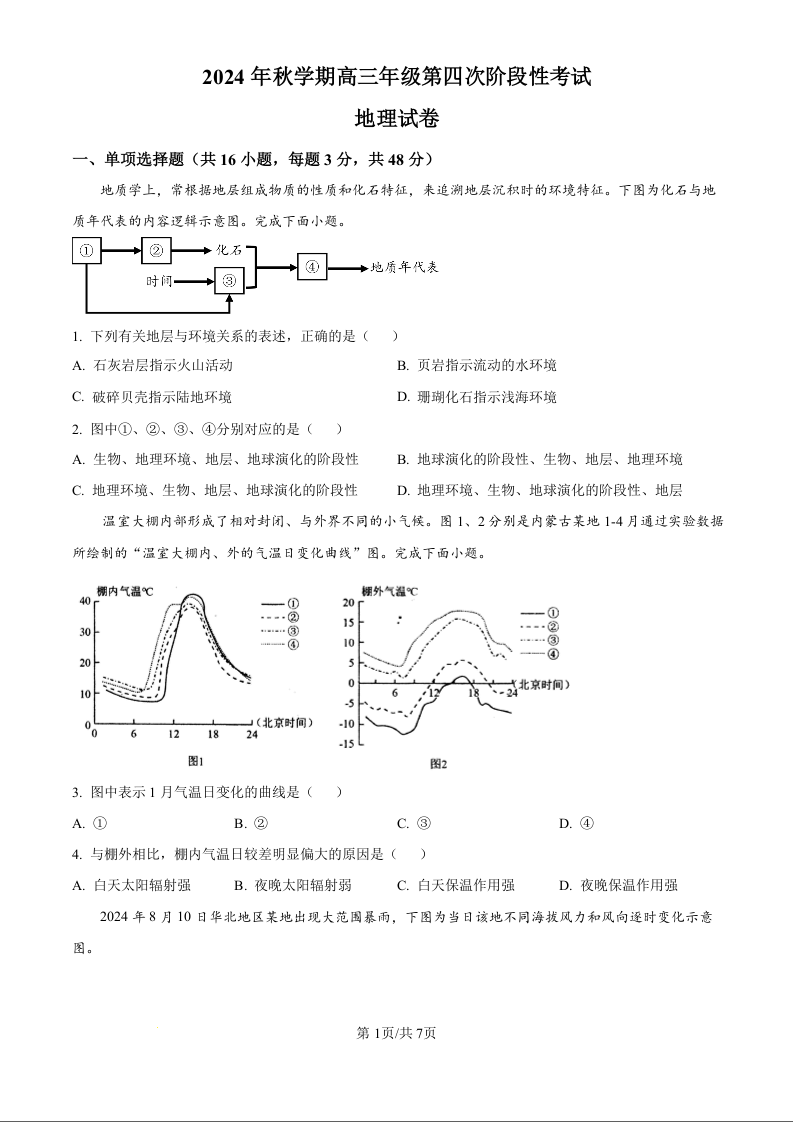 甘肃省平凉一中2024年秋学期高三年级第四次阶段性考试 地理.docx