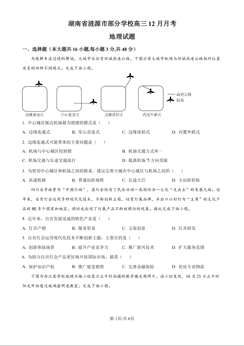 湖南省娄底市涟源市部分学校2025届高三上学期12月月考 地理.docx