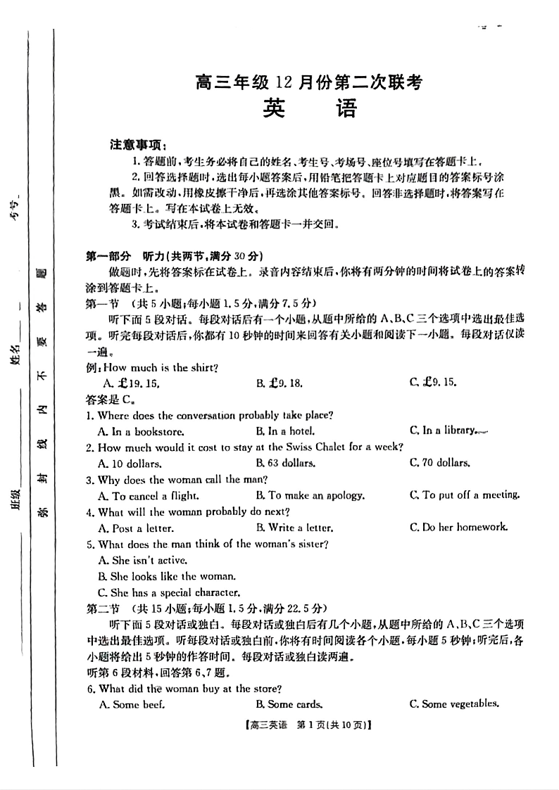 河北省邢台市部分高中2024-2025学年高三上学期12月第二次联考 英语.pdf