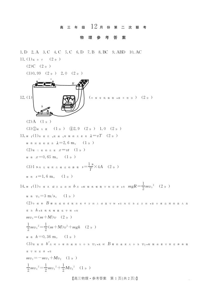河北省邢台市部分高中2024-2025学年高三上学期12月第二次联考 物理答案.pdf