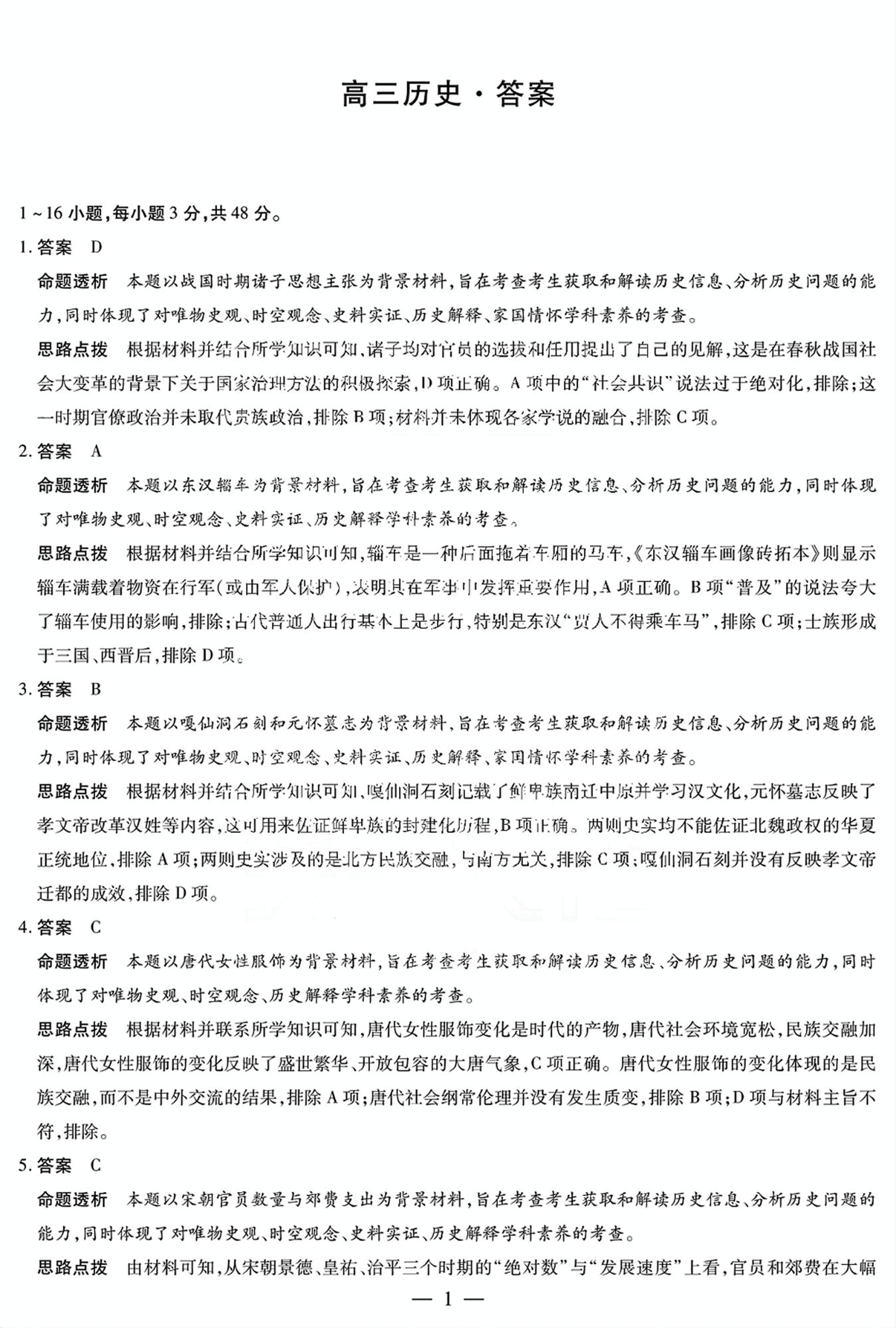 湖南省郴州市2024-2025学年高三上学期12月期末考试 历史答案.pdf