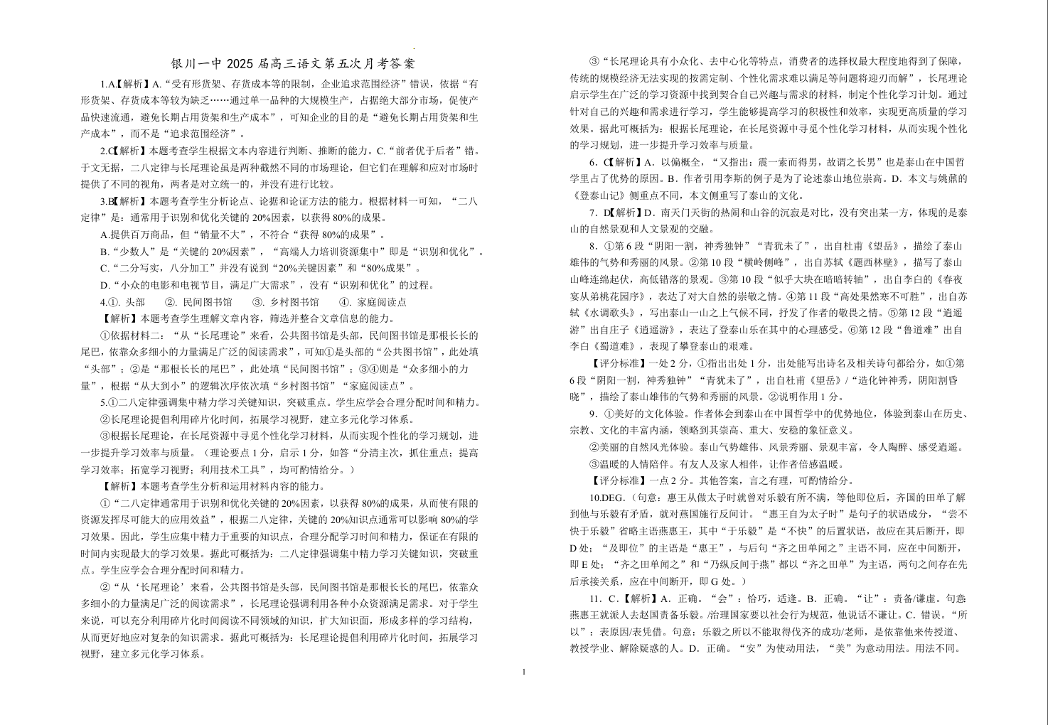 银川一中2025届高三年级第五次月考 语文答案.docx