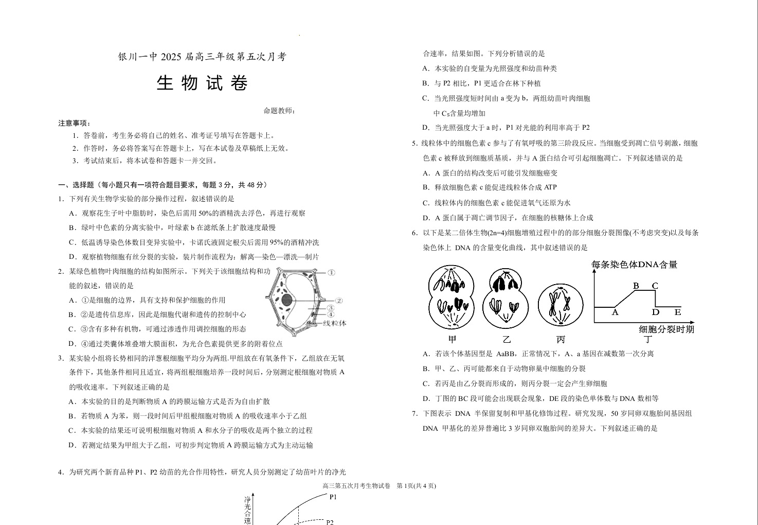 银川一中2025届高三年级第五次月考 生物.docx