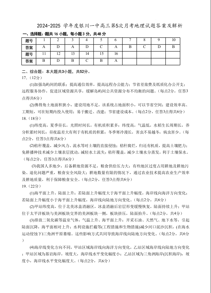 银川一中2025届高三年级第五次月考 地理答案.docx